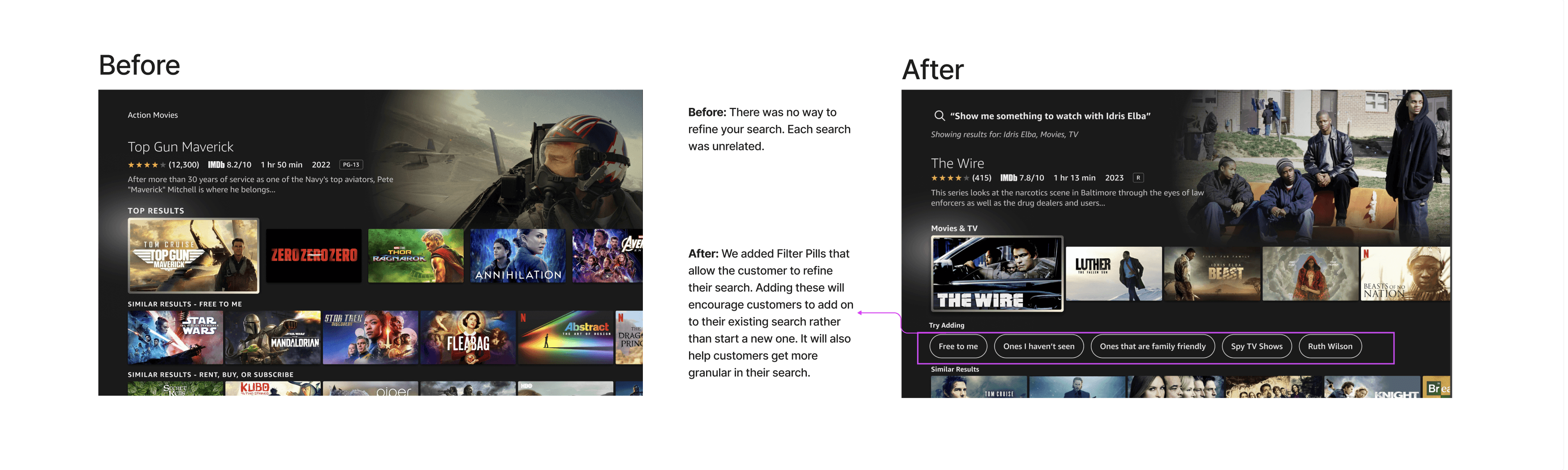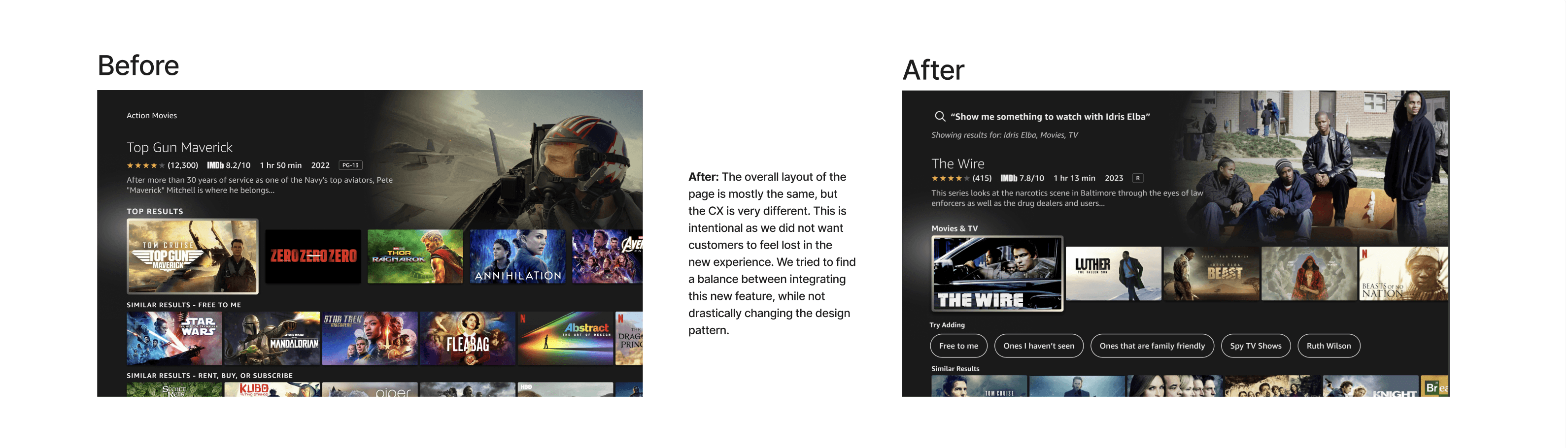 Consistency with Current Design: We designed the new solution with existing components so as to maintain the feel of FireTV search.